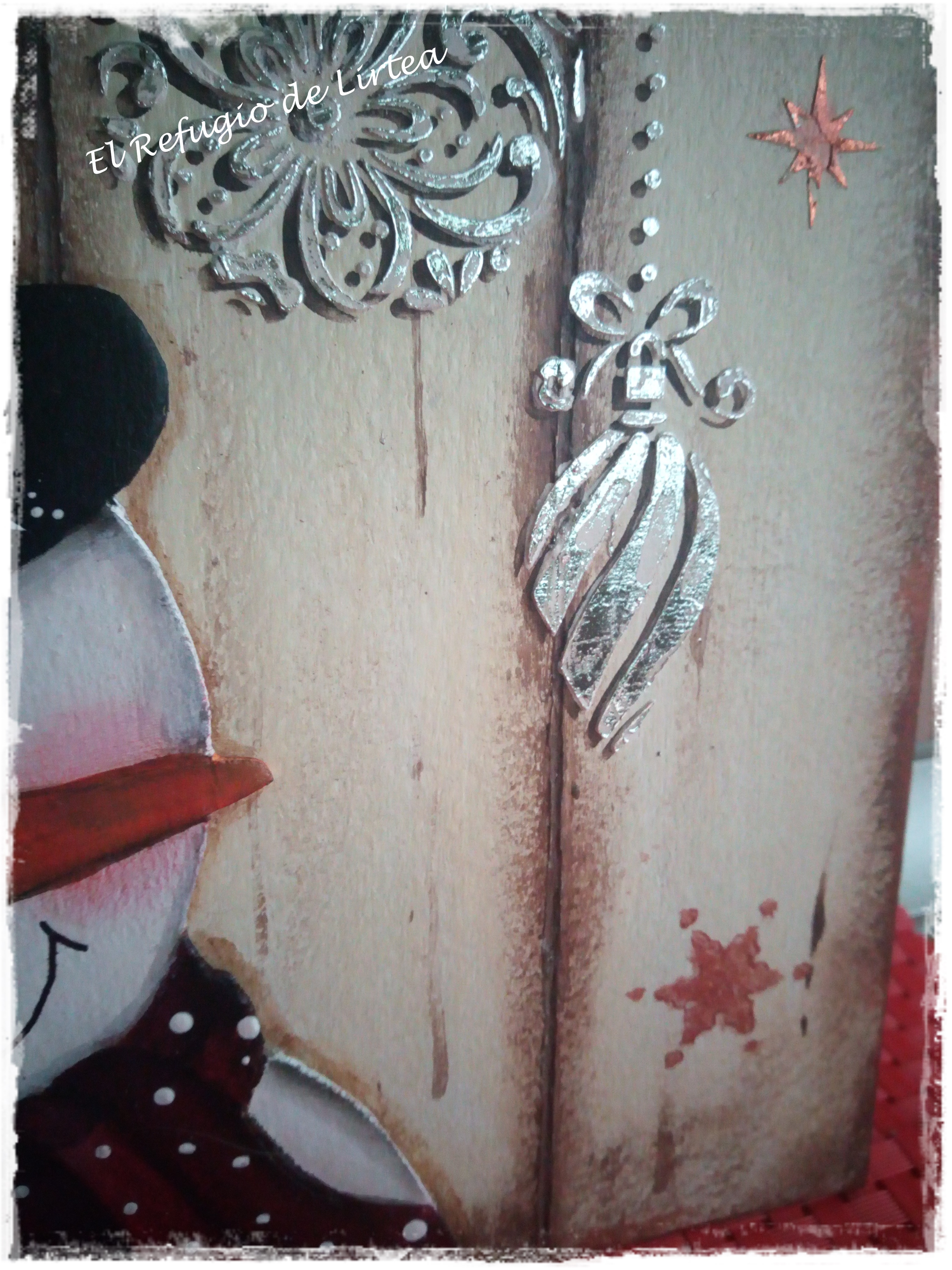 Y con pasta de secado al aire y unos moldes hice los adornos que pinté de blanco y les apliqué pátina marrón para darles un aspecto envejecido.